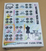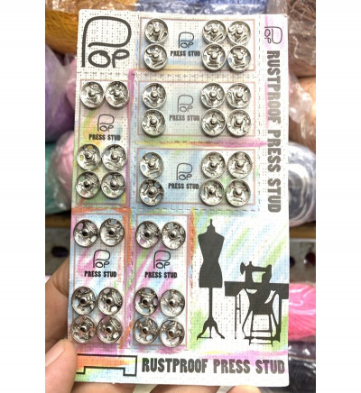 Nút bóp loại tốt hiệu POP có 2 màu đen và trắng, cỡ lớn đường kính khoảng 10mm dùng cho quần áo trẻ em và người lớn. Loại nút này có 2 thành phần, khâu tay trực tiếp vào quần áo và các vật dụng dùng nút bóp - Màu trắng 45k/vỉ gồm 6 bộ 36 cái nút - Màu đen 49k/vỉ gồm 6 bộ 36 cái nút