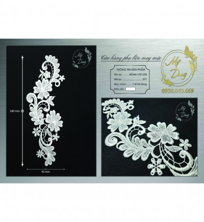 Sản phẩm: Bông chỉ lớn - MS 377 Bông chỉ được thêu tỉ mỉ, hoa văn chau chuốt, thích hợp phối với váy thời trang, đầm dự tiệc, áo dài,... Kích thước tham khảo: Theo hình ảnh mô tả. Quy cách: 1 lố 24 bông. Màu sắc: Nhiều màu lựa chọn (theo danh mục đính kèm). Giá bán theo Combo 24 bông (Cùng loại và cùng màu).