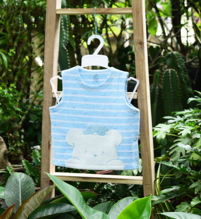 Áo gile organic in hình gấu xanh La Pomme T005 - mẫu Thu Đông 2019 cho bé yêu