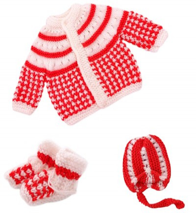 Áo len đan (gồm bao chân + mũ) thiết kế kiểu đan sọc, rất xinh xắn và phong cách, bé nhà bạn sẽ đáng yêu hơn khi diện chiếc áo này. Sản phẩm được làm từ 100% chất liệu cotton mềm mại và ấm áp, rất an toàn cho sức khỏe của bé. Với thiết kế kiểu cài cúc, bé có thể kết hợp áo len sơ sinh với các loại áo khác bên trong như: Áo cộc, áo sơ mi...
