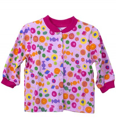 - Tông màu đỏ chủ đạo với họa tiết là những chiếc kẹo hình hoa quả kích thích thị giác bé