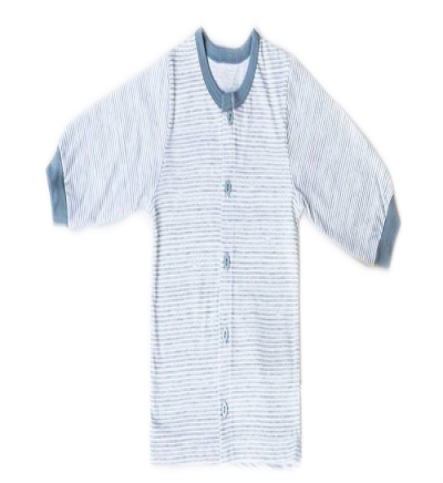 Kiểu áo dài tay, cổ tròn, khuy cài giữa, giúp mẹ dễ mặc và cởi đồ cho bé