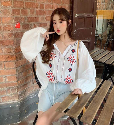 0 đánh giá bán buôn áo thổ cẩm tay phồng trắng tinh tế