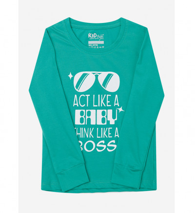 TDE6912 - Áo thun trẻ em cổ tròn tay dài in chữ Think Like a Boss (Xanh lá)
