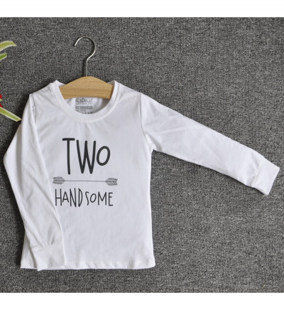 0 đánh giá Bán buôn áo thun trẻ em cổ tròn tay dài in chữ Two Handsome (Trắng)