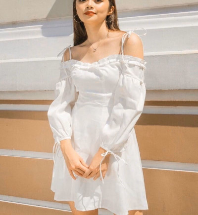 Đầm trắng xếp ly vai Trắng tinh khôi cho ai đó bồi hồi