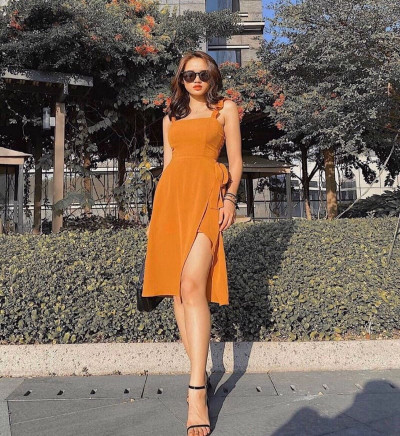 Váy dây maxi bèo thắt nơ xẻ tà. Combo quyến rũ cực kì chanh xả luôn í. Thêm màu cam thích mắt dã man Hè mà không sắm đầm dây thì uổng quá. Các nàng cứ sắm sẵn hết dịch thì mình bung lụa nhá