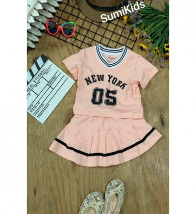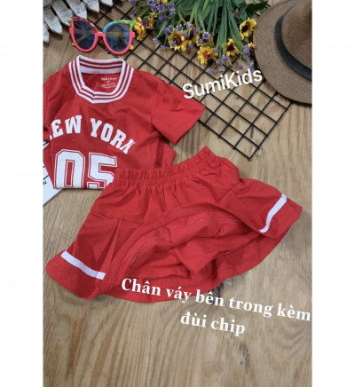 Sumikid chào set chân váy Newyork 05 dễ thương cho bé- Nguyên set may bằng chất thun cotton 4c mềm mịn thấm hút mồ hôi, hình in sắc nét , áo may cổ tim bo đặt dệt loại 1, chân váy rã đô xếp ly, chân váy kèm quần đùi bên trong, hàng bao đẹp- Có 5 màu như hình- Size 1-8 R8 - Size 9-14 R6 Hàng có sẵn