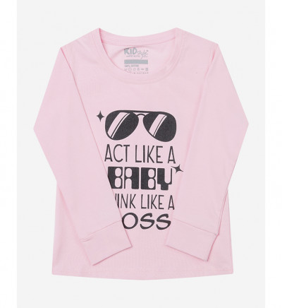 TDE6909 - Áo thun trẻ em cổ tròn tay dài in chữ Think Like a Boss (Hồng phấn)