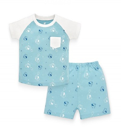 Bộ cộc tay raglan Lullaby NH74B với họa tiết chú voi xanh cho bé trai