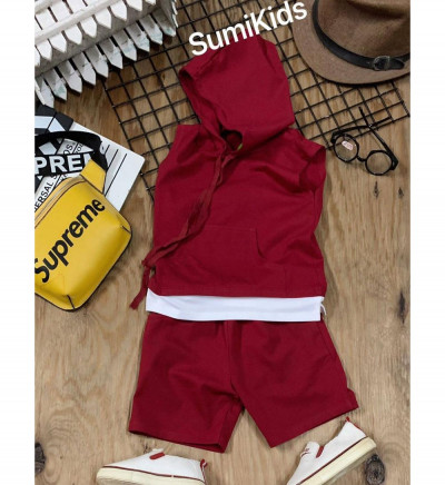 Bộ bé trai SN nón-BT2280501Nguyên bộ may bằng chất thun cotton 4c, áo form sát nách, nón phía sau, phía trước đắp túi, lai phối vải xẻ. Quần đùi trên gốiCó 6 màu như hìnhSize 2-9 R8Size 10-15 R6