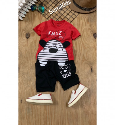 BT210302 - Bộ thun đắp gấu ngộ nghĩnh dễ thương cho bé- Nguyên bộ may bằng chất thun cotton 4c mềm mịn, áo hình gấu may đắp, tay đắp vải theo màu quần, quần decup giả dây kéo- Có 5 màu như hình- Size 1-8 R8 - Size 9-14 R6