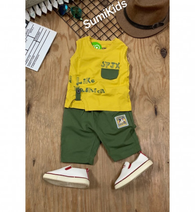 Sumikid chào bộ thun sát nách mát mẻ cho bé trai- Nguyên bộ may bằng chất thun cotton 4c mềm mịn, áo may túi nắp đắp, lai khoét lạ mắt, đắp vải đính nút. Quần giả dây kéo decup sau đính logo- Có 5 màu như hình- Size 1-8 R8 - Size 9-14 R6 Hàng có sẵn