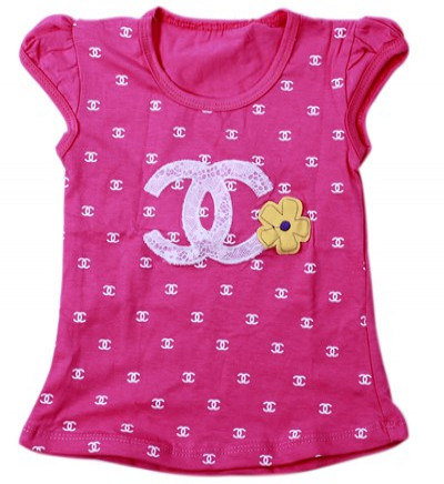 - Áo TA in Chanel cộc tay bé gái được thiết kế với nhiều màu sắc: hồng, vàng, trắng,…