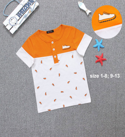 AT070501 - Áo thun phối màu in chiếc giày vải cotton 4c. Size 1-8Size 9-13