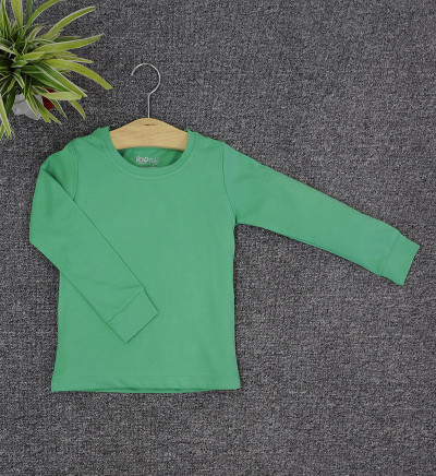 TD12 - Áo thun trơn trẻ em cổ tròn tay dài (Màu xanh lá)