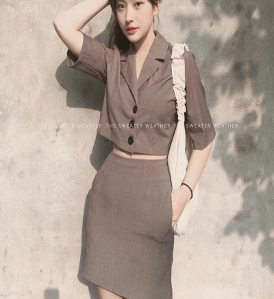 Set áo vest nâu mix thêm chân váy điệu lắm luôn, chân váy có quần trong mặc không lo lộ nè