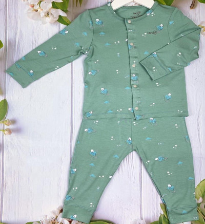 Bộ dài tay bamboo cúc giữa Bons99 (xanh khoáng) may từ chất vải sợi tre kháng khuẩn, thoáng và vẫn đảm bảo tính mềm mại, họa tiết không phai màu. Sản phẩm có đủ size cho bé từ sơ sinh đến 1 tuổi, mẹ căn cứ vào cân nặng và chiều cao của bé để chọn size phù hợp.