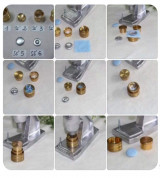 Máy ép khuôn 330kMỗi khuôn là 1 size gồm 4 thành phần từ số 1 đến số 4 như hình. 1 bộ khuôn và phôi đầy đủ có 12 cỡGiá khuôn và phôi nút để bọc vải đủ các size như sau: