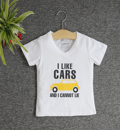 TNE7101 - Áo thun cổ tròn tay ngắn in chữ I Like Car (Màu trắng)