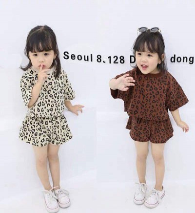 0 đánh giá Bỏ sỉ bộ quần áo croptop bé gái họa tiết da báo (1-4T)
