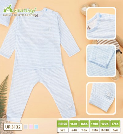 Bộ quần áo dài tay Uala UR3132 kẻ sọc có 3 màu: xanh dương, hồng, ghi