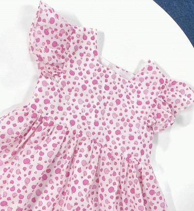 Đầm cổ vuông cánh tiên trái dâu-DG2240601Size 2-6, Sài Gòn đang vào mùa mưa nên kho chia ri 5 cho shop dễ lấy hàng.Size 2-6, ri 5