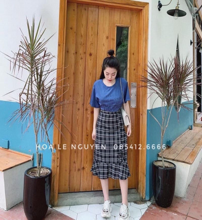 Set áo thun mix chân váy caro rút dây Mặc siêu tôn dáng, chất cực thích.