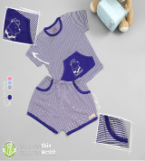 Bộ quần áo cộc tay vải sợi tre với họa tiết sọc kẻ