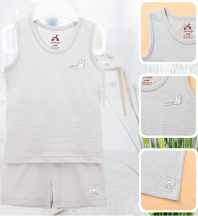 - Bộ quần áo ba lỗ phù hợp cho bé mặc vào thời tiết mùa hè oi nóng