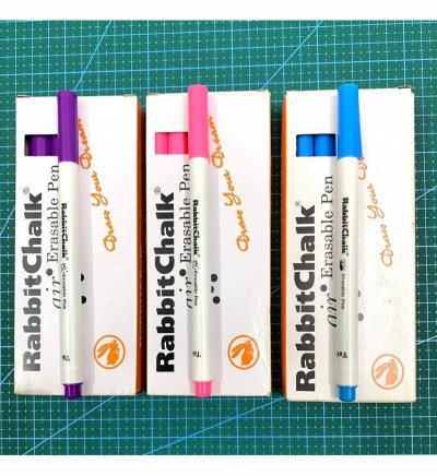 Bút bay xịn sò Rabbit Chalk của Hàn Quốc đã cập bến các bạn nhé Bút Rabbit Chalk là bút tự bay cao cấp được sản xuất tại Hàn Quốc dùng vẽ trên vải thay phấn Bút tự bay màu sau khi vẽ từ 24h-72h tùy theo chất liệu của từng loại vải, nếu chưa bay thì giặt sẽ sạch hoàn toàn Bút dạng bút lông, mực ra rõ nét, rõ màu Sử dụng sạch sẽ, đảm bảo sức khỏe hơn dùng phấn 1 hộp 12 cây 1 màu giá 159k. Có 3 màu là xanh, tím và hồng