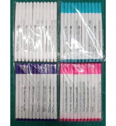 Bút tự động bay màu khi vẽ lên vải sau vài giờ hoặc đến 2 tuần sau tuỳ theo chất liệu vải, giặt sẽ sạch. Chuyên sử dụng vẽ lên vải để cắt may, vẽ hình thêu, vẽ trên simili. - Bút vẽ tự màu này là bứt lông có 4 màu Hồng, xanh, tỉm và màu trắng. Màu hồng và tím thì nhanh bay màu, màu xanh lâu bay màu nhất nếu chưa bay màu thì giặt sẽ sạch nhé, còn màu trắng phải vẽ lên vải màu tối như vải đen, xám đậm, nâu, xanh đen mới thay màu và bút màu trắng ra màu nhạt nhất trong 4 màu - Giá 12k/cây và đang áp dụng chương trình giảm giá nên giá bán thực tế thấp hơn