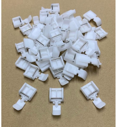 Chân vịt nhựa dùng cho các loại vải, đặc biệt vải thun, vải rít khó chạy của máy may gia đình đa chức năng. Chân vịt nhựa may dây kéo các loại, chân vịt có lỗ xuống kim 2 bên để khi may không phải tốn nhiều thời gian trở bên. Giá 18/ cái.