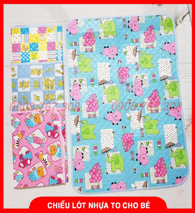 Hàng có sẵn - Chiếu Lót Nhựa To Chống Thấm - Giao hàng ngẫu nhiên phù hợp với giới tính của bé Hàng về thay đổi họa tiết theo mỗi đợt nhâp hàng, mẹ muốn chọn mẫu cho bé xn vui lòng ghi chú hoặc ib cho shop mẫu nhé. Thay tã bỉm cho bé khi bé tè hay ị dễ dàng với chiếu lót nhựa to có kích thước 55cm x 75cm. Chiếu lót được làm từ chất liệu nylon cao cấp mềm mại cho bé cảm giác êm ái khi nằm. Sản phẩm còn rất an toàn với trẻ sơ sinh và trẻ nhỏ. Chiếu lót nhựa là một sản phẩm hỗ trợ đắc lực cho các mẹ khi chăm sóc bé yêu. Ưu điểm nổi bật của chiếu lót nhựa to Chất liệu cao cấp, an toàn Chiếu lót nhựa to với thiết kế gồm 2 lớp. Lớp trên chiếu lót nhựa làm từ chất liệu nylon cao cấp mềm mại tạo sự thoải mái cho bé khi nằm lên. Lớp dưới chiếu lót được làm từ chất liệu cao su chống nước thấm ra ngoài ga giường tốt. Thiết kế tiện lợi Chiếu lót nhựa được thiết kế chống thấm ngược với các lỗ nhỏ và rãnh trên bề mặt. Chiếu lót nhựa to được thiết kế một cách kỹ lưỡng về kích thước vừa vặn với bé thuận tiện cho mẹ và bé khi sử dụng và mang theo đi chơi. Chiếu lót nhựa lớn với kích thước lớn giúp mẹ tiện lợi khi sử dụng đồng thời dễ dàng gập nhỏ cho mẹ cất giữ mang theo đi ra ngoài với bé. Màu sắc đa dạng Chiếu lót được thiết kế nhiều màu sắc khác nhau với các họa tiết đáng yêu. Sản phẩm vừa hữu ích cho mẹ chăm sóc bé, vừa giúp bé khám phá vui chơi với màu sắc và hình ảnh trên chiếu. =====================Tongkhodososinh.com trực tiếp sản xuất và phân phối độc quyền, không qua trung gian các sản phẩm, đồ dùng cho mẹ và bé sơ sinh nên cam kết giá cả, mẫu mã và chất lượng luôn tốt nhất thị trường. ✔ Uy tín đã được đảm bảo với hàng vạn đơn hàng trên khắp cả nước.✔ Đảm bảo nhận hàng giống hình, do shop tự chụp nha các mom.✔ Hoàn tiền 100% nếu sản phẩm giao không như mô tả.✔ Liên tục TUYỂN SỈ và CTV chiết khấu cao. Gọi O988.582.6O6 hoặc CHAT với shop để biết thêm thông tin.