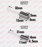 Chổi than loại đẹp thay vào mô tơ có hai loại: Chổi than nhỏ thay vào củ mô tơ công suất 180W Chổi than to thay vào củ mô tơ công suất 250W Củ mô tơ như hình minh hoạ