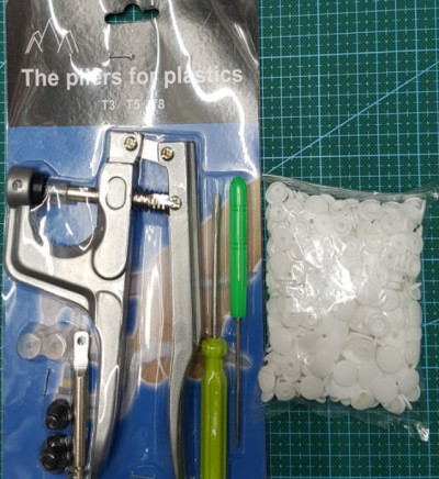 Combo gồm 1 cây kềm dùng bẩm nút nhựa 4 thành phần và 1 bịch nút nhựa màu trắng 100 cái, giá bộ combo 195.000 đồng, giảm giá còn 170.000 đồng