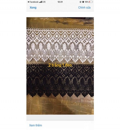 Đơn hàng:20 ren cổ là 260k.2 bó chỉ đen, trắng 12cm là 540k.2 bó chỉ đen, trắng 10cm là 410k.5 bó trắng 18cm là 1.525k.3 bó ren chỉ trắng, đen là 630k.Tổng cộng 3.365k