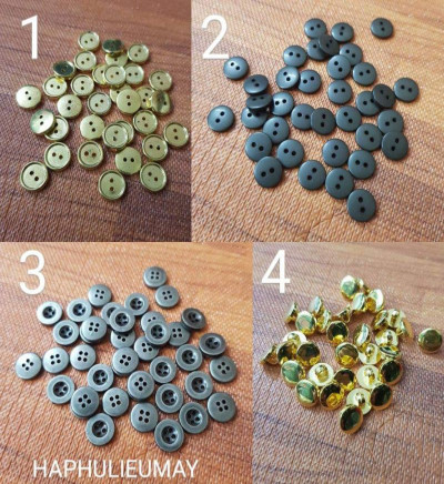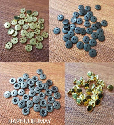 Cúc áo đường kính cúc 1 cm quy cách đóng gói 100 gam hoặc 50 gam giá từ 20.000 đến 30.000 đ / 100 gam chuyên sỉ lẻ phụ liệu may mặc giá tốt