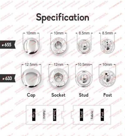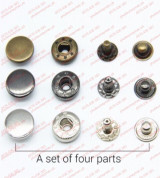 Sản phẩm cúc dập 4 thành phần, không gỉ, cúc dập chắc chắn. Dùng để làm cúc quần, cúc áo, mẫu mã đẹp. Quy cách: 40 bộ/túi