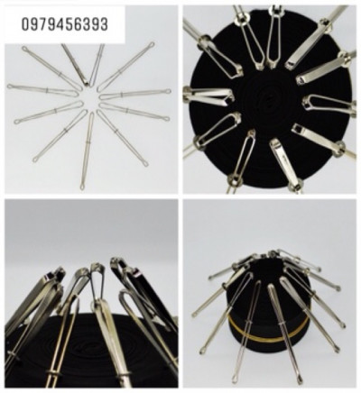 Dụng cụ luồn chun giúp cho chúng ta luồn chun dễ dàng hơn bao giờ hết. Cách sử dụng: đẩy vòng tròn xuống dưới, sau đó kẹp chun vào, đẩy vòng tròn lên đến khi dụng cụ kẹp chặt chun.