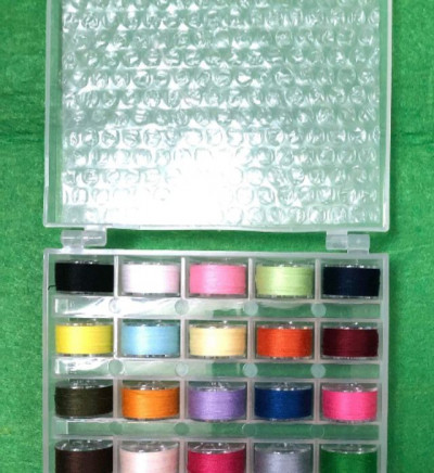 Hộp đựng 25 suốt nhựa có chỉ 25 màu khác nhau, rất tiện lợi cho các bạn may vá trong gia đình. Loại suốt nhựa này cao khoảng 11mm dùng cho máy gia đình may được nhiều kiểu đường may Giá 75k/hộp