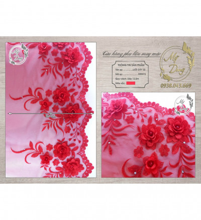 Lưới dây 3D chuyên để may phối váy cưới, đầm trẻ em, áo dài cách tân, đầm dạ hội,... hoặc có thể sáng tạo theo sở thích riêng của bạn. Bông 3D được thêu tỉ mỉ, màu sắc phối đẹp mắt, đảm bảo sẽ đem lại sự hài lòng cho quý khách hàng thân yêu. Cam kết ảnh chụp sản phẩm thực tế. Quy cách: Dây dài 13,5 mét. Màu sắc: 3 màu lựa chọn (Đỏ, hồng phấn, kem).