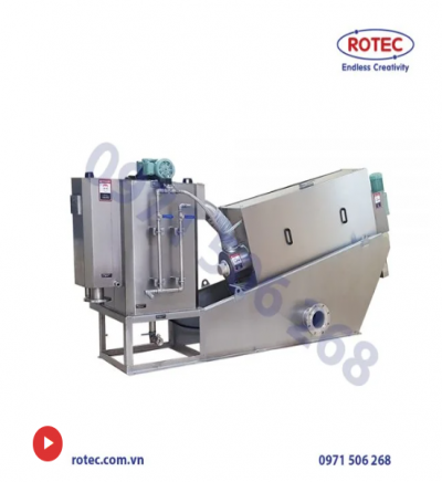 Máy ép bùn trục vít là một thiết bị được sử dụng ở công đoạn cuối trong quy trình xử lý nước thải. Máy xử lý được những loại bùn thải đặc biệt như: bùn khai khoáng (than, xi mạ kim loại, mỏ quặng hay bùn đặc biệt khó ép) mà các loại máy thông thường (băng tải, khung bản) không xử lý được. Máy có thể làm giảm các bể lắng hay bể bùn dày, từ đó giúp tiết kiệm chi phí xây dựng cho các nhà máy xử lý nước thải. Máy ép bùn này là một sản phẩm chất lượng cao được sản xuất và thiết kế bởi Công ty TNHH Rotec Việt Nam.