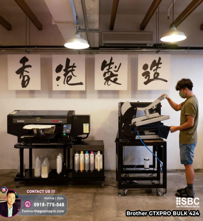 Sử dụng công thức mực in gốc nước (pigment) độc quyền Brother Innobella™ - loại mực in có độ tương thích cao trên các tính chất vải 100% cotton, 50% cotton/poly, 100% poly, len, nhung, silk, jean, canvas, leather…phổ biến trên các hàng may mặc như áo thun, đồng phục, quần áo thể thao, khăn tay, túi tote vải, áo khoác hoodie,…Bảng giá bán máy in Brother GTX Pro (GTX424)Để cập nhật chi tiết bảng giá bán máy in, các vật tư và phụ kiện liên quan đến máy in Brother GTX Pro Bulk (GTX424) mới nhất tại thị trường Việt Nam, vui lòng kết nối đến chúng tôi qua Hotline/Zalo: https://zalo.me/0918775548Địa chỉ cung cấp máy in Brother GTX Pro Bulk (GTX424) chính hãngChúng tôi – công ty SBC Việt Nam, được ủy quyền trở thành đại lý cung cấp và phân phối chính thức máy in Brother GTX Pro (GTX424) chính hãng tại thị trường Việt Nam. Là doanh nghiệp uy tín với 19 năm kinh nghiệm thị trường về ngành hàng máy in phun khổ lớn kỹ thuật, bao gồm 3 địa chỉ showroom tại:Văn phòng Hà Nội:B5-Lô 15 KĐT mới Định Công, Quận Hoàng MaiVăn phòng Đà Nẵng:123 Võ Chí Công, Phường Hòa Xuân, Quận Cẩm LệVăn phòng Tp.HCM182C Lê Thị Bạch Cát, Phường 11, Quận 11Đại diện kinh doanhTình Vũ - Hotline: 0918775548Email: tinhvu@thegioimayin.com