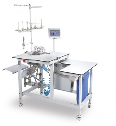 Máy vắt sổ thân quần Jean Euromac EM 4014 với năng suất 700 tới 900 cái cho 1 ngày làm việc.