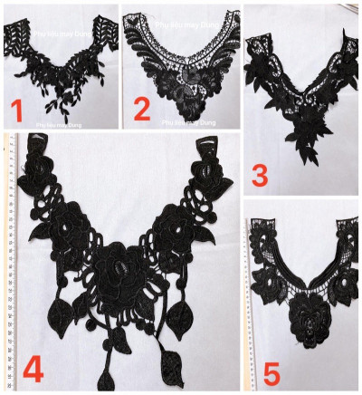 0 đánh giá ren thêu ren đắp cổ áo tồn kho màu đen