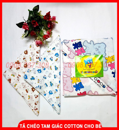 Tã chéo in hình chất đẹp, chất liệu vải cotton mềm mại, thoáng mát, an toàn cho da bé- Bề mặt vải cùng các đường viền mềm mịn, không nổi cộm, không gây ngứa rát hay mẩn đỏ, do đó an toàn cho làn da nhạy cảm của bé. Thiết kế tiện dụng- Tã chéo được thiết kế với kiếu dáng hình tam giác cùng kích thước vừa phải thuận tiện hơn cho mẹ trong việc thay tã.- Với chất vải dễ dàng giặt sạch, mẹ có thể sử dụng cho bé nhiều lần.- Tã chéo có hai màu xanh và hồng cho các mẹ lựa chọn phù hợp với cả bé trai và bé gái=====================Tongkhodososinh.com trực tiếp sản xuất và phân phối độc quyền, không qua trung gian các sản phẩm, đồ dùng cho mẹ và bé sơ sinh nên cam kết giá cả, mẫu mã và chất lượng luôn tốt nhất thị trường. ✔ Uy tín đã được đảm bảo với hàng vạn đơn hàng trên khắp cả nước.✔ Đảm bảo nhận hàng giống hình, do shop tự chụp nha các mom.✔ Hoàn tiền 100% nếu sản phẩm giao không như mô tả.✔ Liên tục TUYỂN SỈ và CTV chiết khấu cao. Gọi O988.582.6O6 hoặc CHAT với shop để biết thêm thông tin.