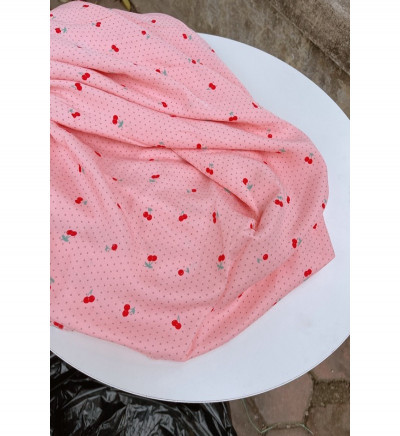 0 đánh giá Thanh lý vải đũi mịn quả chery nhỏ nền chấm bi