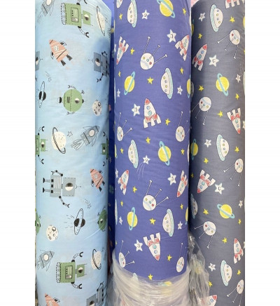 0 đánh giá Thanh lý vải thô lụa mềm mát hình người máy xanh bé trai