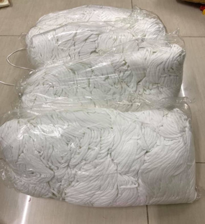 Thun ống sợi 5mm, đây là thun loại tốt, sợi mềm mịn và co giãn nhiều, sử dụng may quai đeo khẩu trang vải và khẩu trang y tế ĐẶC ĐIỂM NỔI BẬT: Thun mềm mịn, với thành phần Spandex giúp độ co giãn đàn hồi tốt, không gây đau cho người sử dụng khi đeo lâu ngày. Đặc biệt trong quá trình sản xuất may dây thun dễ dàng kết dính vào khẩu trang, không dễ bị đứt Màu sắc: trắng cỡ 5mm Giá 50k 1 bó 20m giảm giá còn 45k Nhanh tay, chỉ còn 1 ít thun thôi, chậm là hết hàng ngay nhé